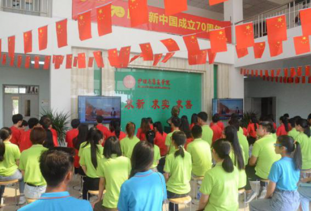 2019年10月1日,为庆祝新中国成立70周年,全院师生在公司梦想广场参加升旗仪式。随后,全院师生开展了“我爱你,中国”签名活动。活动结束后,老师们在公司会议室集中观看国庆阅兵典礼直播,全院员工干部以及员工代表...