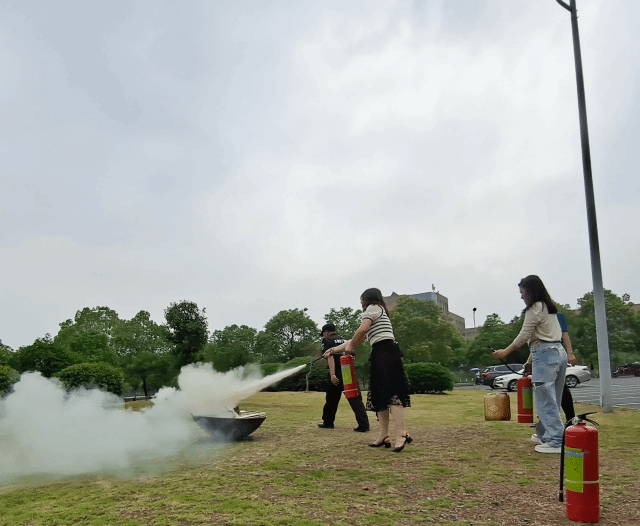 活动开始,消防科人员向现场教师讲解如何正确使用消防器材以及如何在火灾中自救、互救等消防知识,现场示范了干粉灭火器、二氧化碳灭火器、水枪等正确使用方法。在之后的灭火演练实践环节,教师们亲身体验了扑救油桶火灾等行动。
