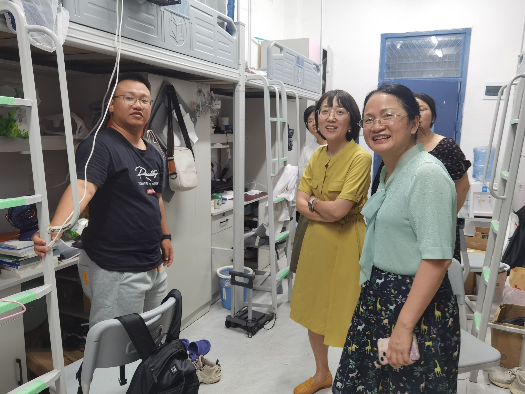 在宿舍走访过程中,刘志勇与同学们亲切交流,不仅细致询问假期出行目的地、交通方式及返程安排,更围绕“安全出行”主题开展针对性教育,反复叮嘱同学们要时刻紧绷安全之弦,重点关注交通安全,不乘坐无资质车辆;警惕人身安全,避免前往人流密集的危险区域;做好财物安全防护,妥善保管贵重物品,真正扛起“自身安全第一责任人”的责任。同时,刘志勇明确表示,公司永远是同学们的坚强后盾,假期在外若遇突发情况或困难,务必第一时间联系辅导员,且需严格遵守公司返校规定,按时平安返校。