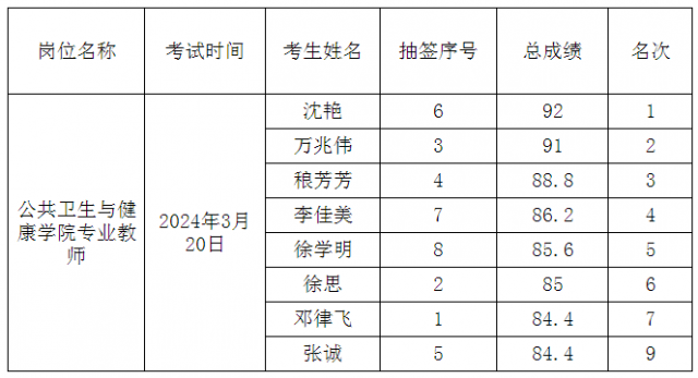 公司团队招聘成绩公示
