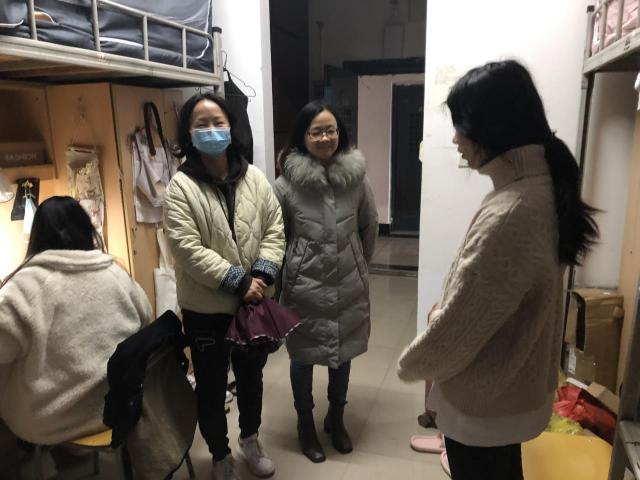 为进一步落实公司疫情防控会议精神,筑牢校园安全防线,了解员工健康情况和思想动态,12月1日晚上,公司党委书记李晖、副经理刘蓉、员工科长傅雨、团委书记李军以及辅导员余咏共同走访了全院员工宿舍。