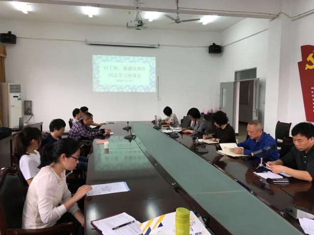 座谈会开始,李晖书记传达了江西省教育厅《关于开展向王雨、谢盛纹两位同志学习活动的通知》等相关文件,张玉娟副书记讲述了王雨、谢盛纹两位老师的个人经历、感人事迹。