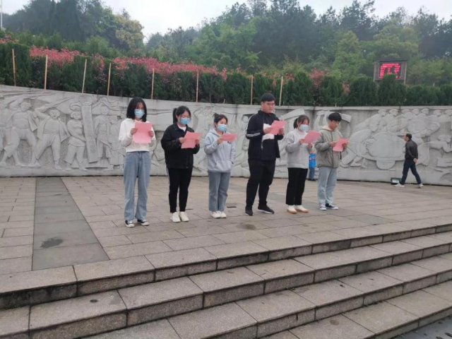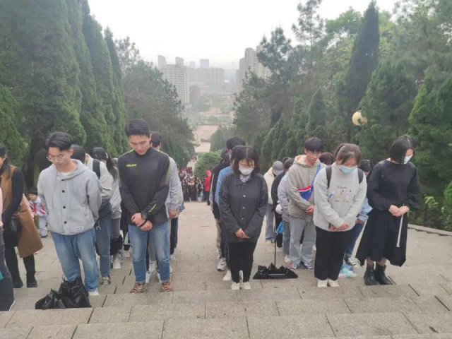 在仰天岗革命烈士纪念碑前,同学们庄严肃立,瞻仰革命烈士英雄纪念碑,为英勇牺牲的革命英雄默哀,表达对革命烈士的深切缅怀和无限敬仰。
