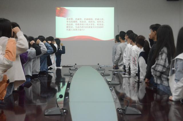 ​团课结尾,同学们举起右手,庄严宣誓,以今日之誓言,答时代之问卷。