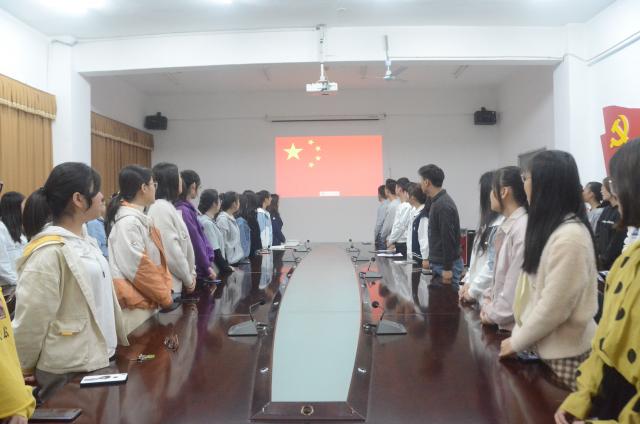 在庄严的国歌声中,本次主题团日活动拉开序幕