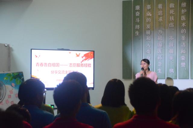 9月20日晚,护理与康复公司在医学楼A座一楼大厅举办“青春告白祖国”---志愿服务经验分享活动,公司党委副书记刘晓燕,校党委委员、组织部部长姚伟,经理吴玉华,院党委书记李晖,公司党委副书记张玉娟,18健康服务与管理班班主任占星新以及部分新生代表共计150余人参加了此次活动。