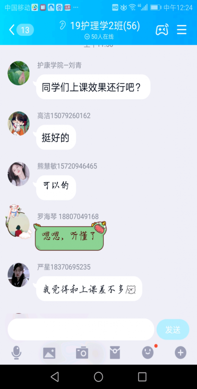 护理与康复公司共有65门课完成了网上建课,主要依托超星、中国大学MOOC智慧树和学堂在线开展线上教学。在超星等平台互动不流畅时,老师们启用应急教学预案,利用QQ直播钉钉和腾讯会议等平台进行直播。吴玉华经理用学习通录播课程,同学们有不懂的疑难知识点可以错开高峰期反复回看,提升学习效率。同时她还利用学习通群聊功能关注同学们心理健康问题,做到防疫学习两不误。刘青老师利用腾讯会议开展课程直播教学,同屏教学PPT,抽象知识点可以运用白板功能及时讲解,员工反映和平时面授上课效果一样,反响良好。