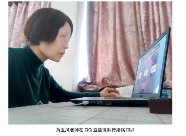 黄玉凤老师虽然全院年龄最大,马上要退休,认真好学,不耻下问,虚心向年轻人学习各种现代教学方法。在内科护理学直播讲述乙型肝炎传染病知识时,结合当前新冠肺炎实际,举例当病人和家属被隔离时,医护人员不仅做了本职工作外,还做了清洁工、搬运工和护工等工作,医护人员的付出,受到了大家的尊重,感动了全社会,引导员工增强职业意识。讲解传染病的三个环节是控制传染源,切断传播途径,保护易感人群。同学们在家里隔离一个多月就是切断传播途径,保护易感人群,为防控做贡献。深入浅出,充分挖掘课程中蕴含的思想政治教育元素,恰到好处让同学们明白不仅要掌握精湛的技术水平和能力,更要求有高度的责任心和细心。责任担当中激发学习动力,将抗击疫情中感受到的这份责任、担当与所学专业相结合,将个人抱负与国家的前途命运紧密相连;在坚韧不拔中磨砺学习意志,正面看待学习生活中的急流险滩,从容面对各种艰难困苦,“守得云开见月明”