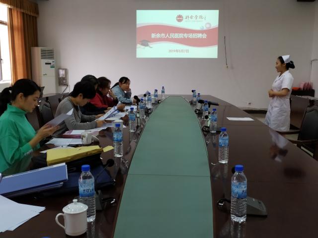 会上,吴玉华对罗勇一行的到来表示热烈的欢迎。随后,罗勇从医院的发展历史、工作环境、生活环境等方面简要地介绍了新余市人民医院。公司共有30余名2019届护理(学)专业的优秀毕业生参加了专场招聘会的面试。最后,黄桂桂对公司员工展现出来积极的态度、热情洋溢的面貌和良好的心理素质表示了肯定的态度。